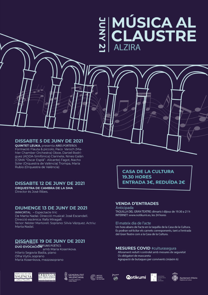 El diumenge 13 de juny a les 19.30 hores a la Casa de la Cultura d’Alzira