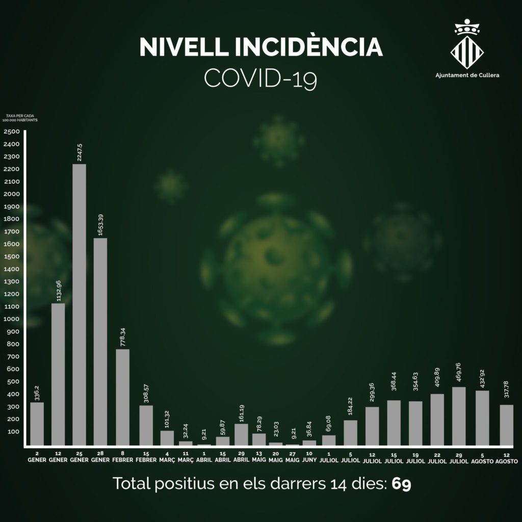 Salut Pública comunica hui 69 casos en els darrers 14 dies, el que suposa una taxa de 317’78 per cada 100.000 habitants.