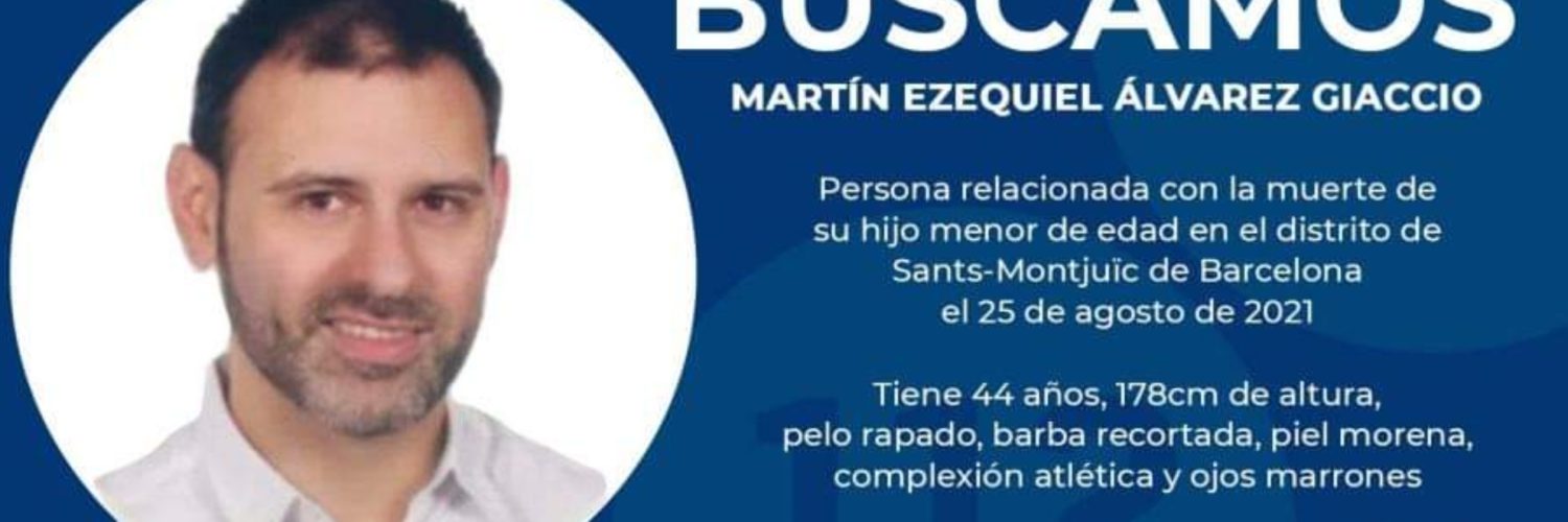 La Comissaria General d’Investigació Judicial dels Mossos d’Esquadra ha decidit aquesta vesprada difondre la imatge i dades personals de Martín Ezequiel Álvarez Giaccio, l’home de 44 anys que el dimarts a la nit va assassinar al seu fill de dos anys i nou mesos, en una habitació de l’hotel Concòrdia de Barcelona.