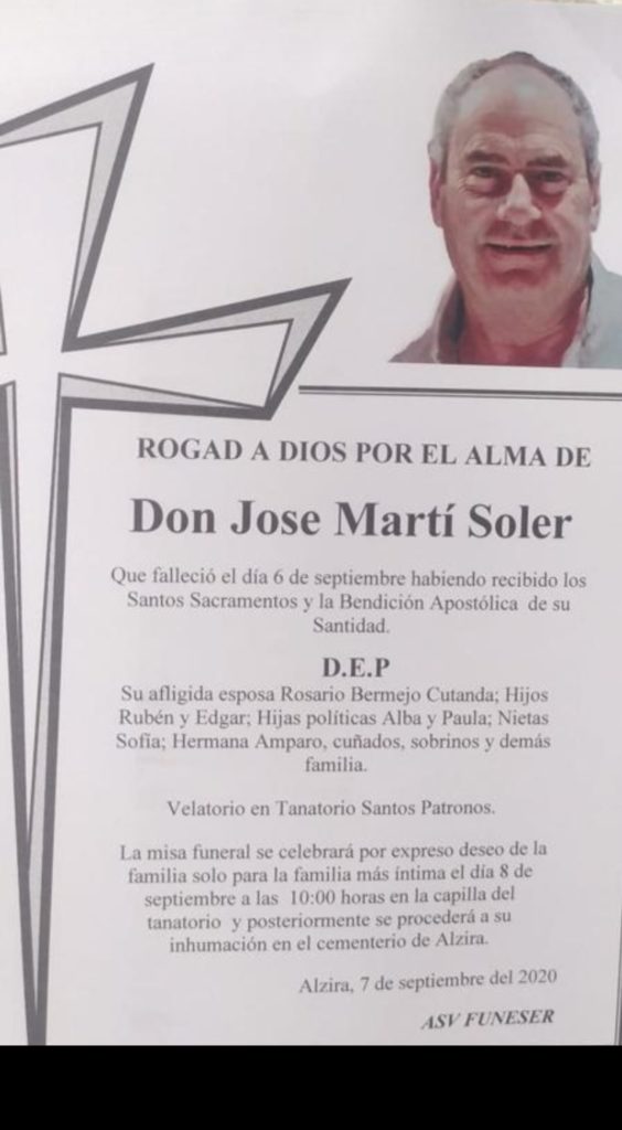 Hoy tenemos la pena de informar del fallecimiento de José Martín Soler.