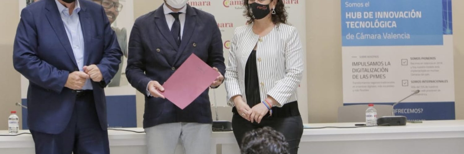 14/setembre/2021. La Diputació de València i Cámara Valencia han posat en marxa un nou servei d’assessorament gratuït per a ajudar els autònoms, emprenedors i pimes a digitalitzar els seus processos de negoci i integrar la tecnologia en els seus productes. El servei ha sigut presentat este dimarts al pati dels Scala de la corporació provincial pel president de la Diputació, Toni Gaspar, el president de Cámara Valencia, José Vicente Morata, i la diputada de Modernització, Mentxu Balaguer, que han estat acompanyats per responsables locals dels municipis que s’han sumat a l’acord.