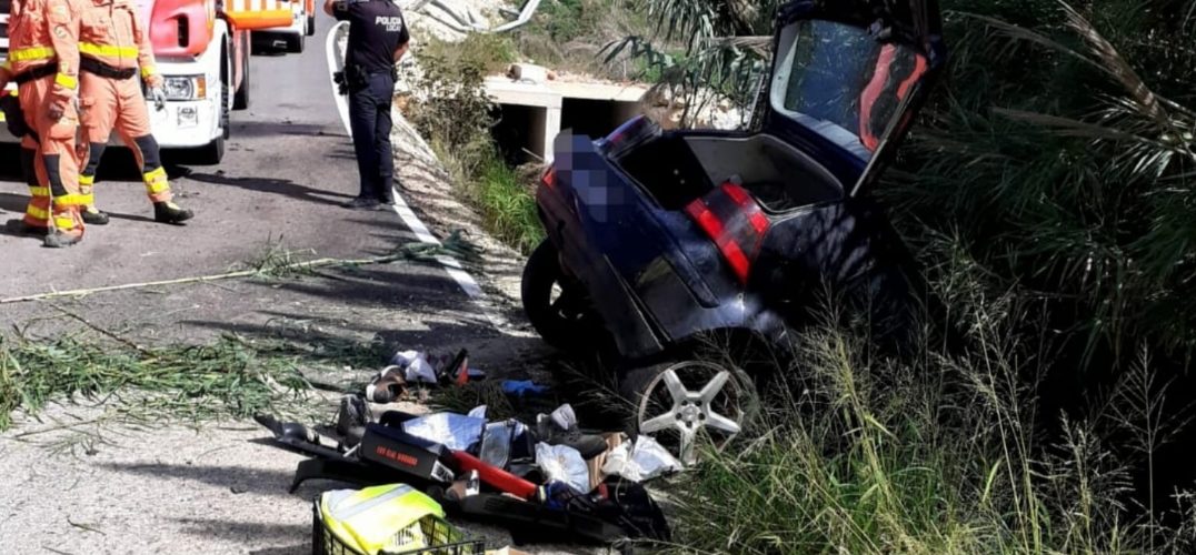 Es tractava d’un vehicle que ha patit una eixida de via al camí Séquia Xops, caent uns dos metres d’altura a una séquia sense aigua.
