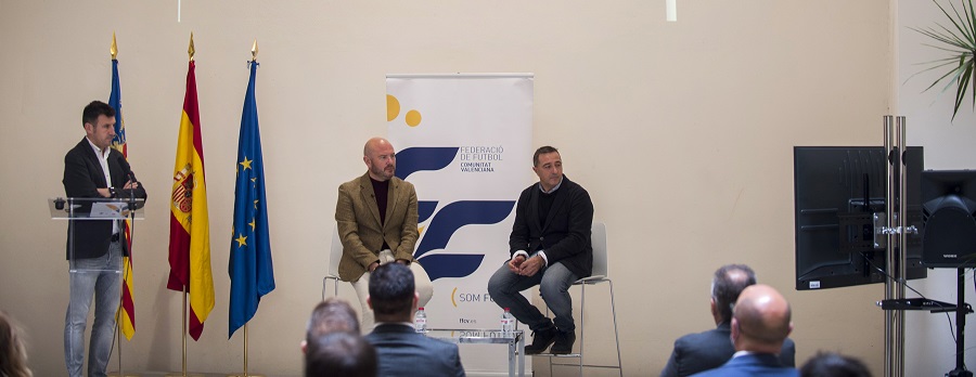 La Diputació de València i la Federació de Futbol de la Comunitat Valenciana (FFCV) han presentat este divendres al pati dels Scala de la corporació provincial l’acord pel qual, un any més, les dos entitats col·laboren per a promoure el futbol, especialment el de base i femení, en tota la província. El president de la Diputació, Toni Gaspar, i el de la FFCV, Salva Gomar, han explicat els detalls d’un acord pel qual l’àrea d’Esports que dirigix Andrés Campos aporta 220.000 euros a la Federació.