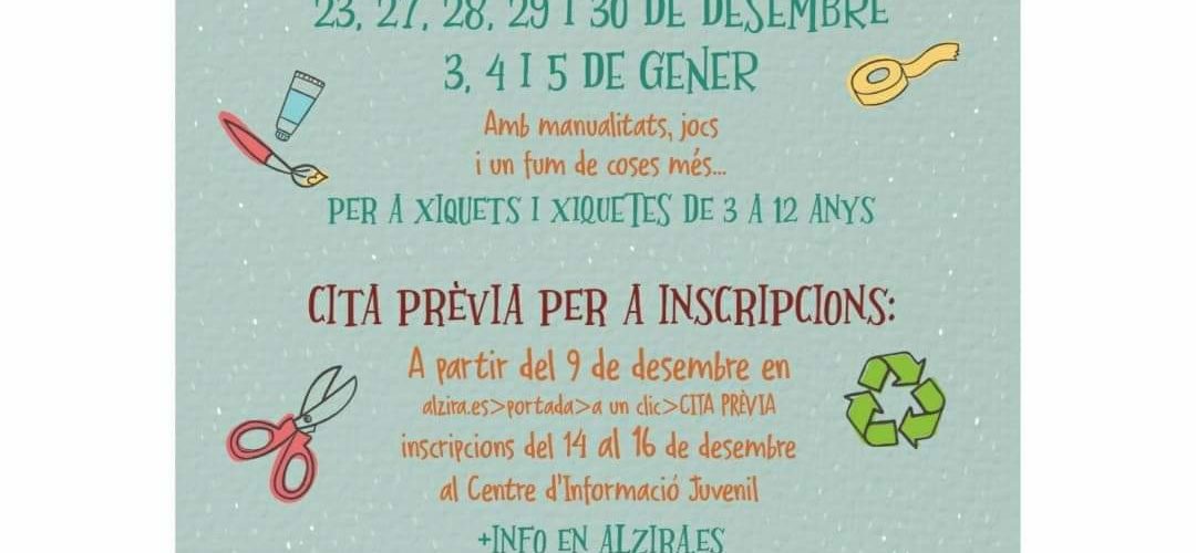 - Sol.licita la cita prèvia per a la inscripció a partir del 9 de desembre en el web municipal www.alzira.es, apartat cita prèvia @ajuntalzira