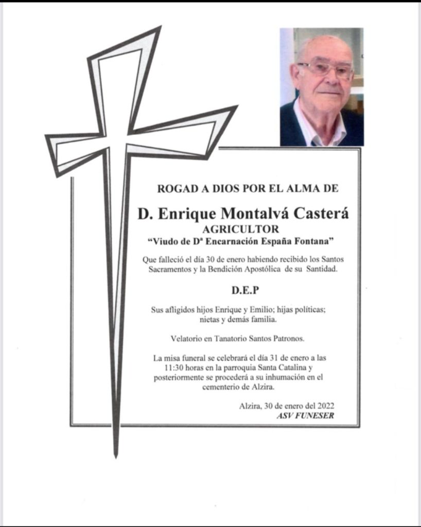 Ha fallecido Enrique Montalva Castera, padre del concejal del Partido Popular, Enrique Montalva.