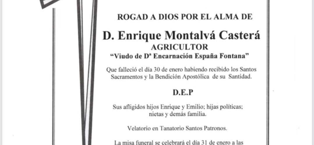 Ha fallecido Enrique Montalva Castera, padre del concejal del Partido Popular, Enrique Montalva.