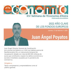 Juan Àngel, Director General de Coordinación de la Accion de Gobierno en GVA nos hablará acerca de NextGeneration EU, un instrumento temporal de recuperación dotado con más de 800.000 millones de euros que contribuirá a reparar los daños económicos y sociales inmediatos causados por la pandemia de coronavirus.