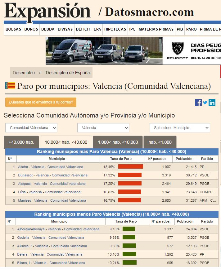 L’ALCÚDIA ENTRE ELS TRES MUNICIPIS VALENCIANS AMB MENYS ATUR.