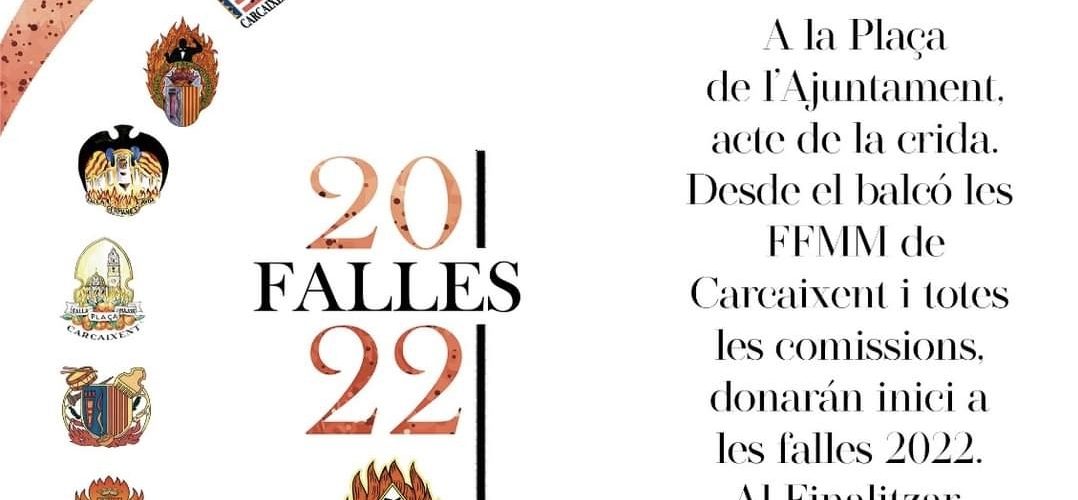 Els components de les 13 comissions falleres tindran el punt de trobada enfront de la Casa consistorial de Carcaixent on desde el Palacio de la Marquesa i a les 20:00 hores s’iniciarà la tradicional Cridá a carec de la Fallera Major 2022 Susi Payá i la Fallera Major Infantil Elisabeth Villar.