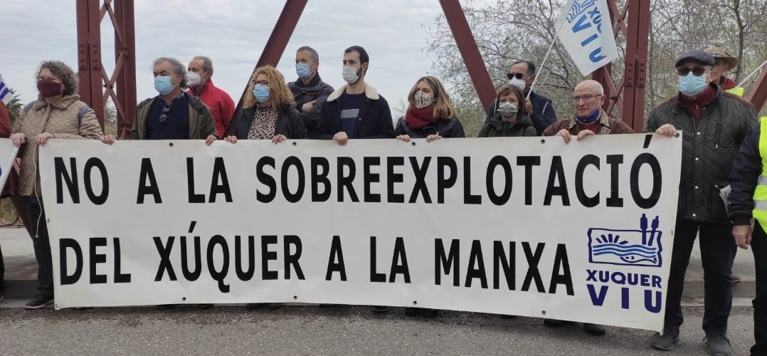 – Al Xúquer no li sobra aigua. No al transvasament d’aigua del Xúquer al Vinalopó. Respecte al transvasament Xúquer-Vinalopó cal tenir en compte que tant el riu Xúquer com l’Albufera estan lluny d’assolir el bon estat ecològic. L’actual situació de sobreexplotació agreujada pel canvi climàtic, fan del tot impossible atendre cap altra demanda sense posar en greu risc les nostres masses d’aigua. Cal dir que el propi Pla Hidrològic reconeix la gravetat de la situació futura, quan estableix un dèficit de 250 hm3 en el sistema Xúquer, que eleva fins 300 hm3 com a conseqüència del canvi climàtic, degut a la forta disminució de recursos.​