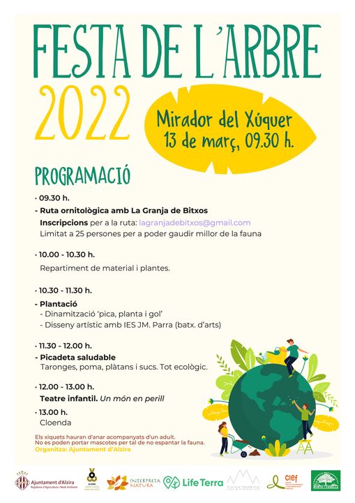 Diumenge, 13 de març, torna la Festa de l’Arbre a Alzira!!!.