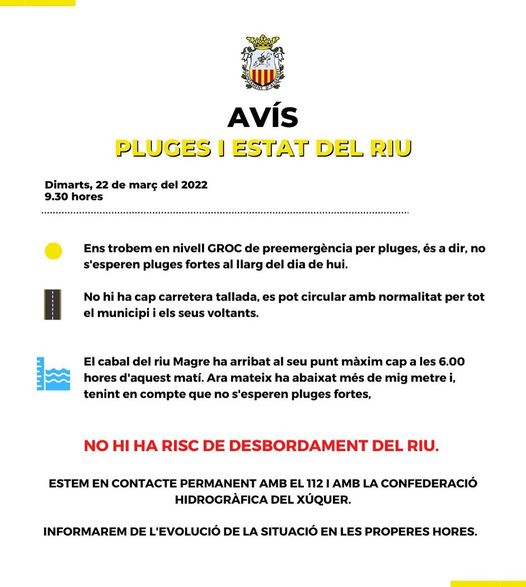 Anterior S’obri el termini per sol·licitar ajudes a l’esport femení Pròxim Important creixement del riu Magre actualitat Algemesi informa de les pluges i estat del riu Magre 22 marzo, 20221 minuts vists Comentar Facebook Twitter WhatsApp Correu electrònic Des de l’ajuntament de la ciutat d’Algemesí s’ha fet public un avís informatiu relacionat amb les pluges que persisteixen en la zona, al igual que l’estat del va el riu al seu pas per la població Algemesi PLUGES riu magre Fina Valiente Vore totes les publicacions També et pot agradar actualitat 🎬👀 Programació Festes de la Mare de Déu de la Salut Algemesí 2024 5 minuts vists actualitat #FiraiFestesSueca2024, Presentacio Festera Major 1 minuts vists actualitat, Cultura, festes, Societat 👀🎞La novena i els assajos inicien l’agenda de les Festes de la Mare de Déu de la Salut 3 minuts vists Comentar Cancelar la respuestaTu dirección de correo electrónico no será publicada. Los campos obligatorios están marcados con *Comentario Nombre * Correo electrónico * Web Δ MAIGMAYO 12M12E CAMARENA eterniajoyeria novembre Idea 12 EMPRESES 12 COMERÇOS. JSR_ novembre Idea 12 EMPRESES 12 COMERÇOS.Asociación Empresarial AlziraDia de Promocions Especials