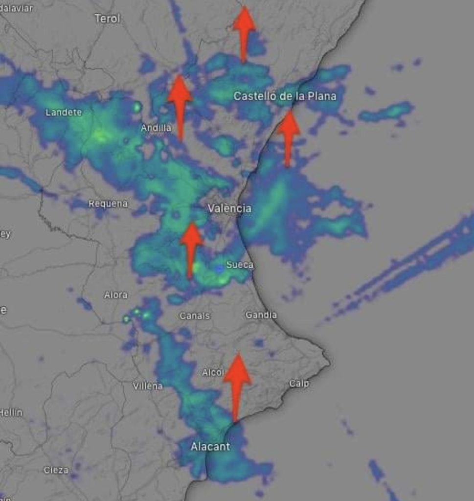 De fet, tot i que seran més dèbils que les de dies anteriors continuaran acumulant litres, sent les més abundants a les províncies de Castelló i València, tot i que podran produir-se en qualsevol punt del territori. La situació anirà millorant durant la segona meitat del dia.