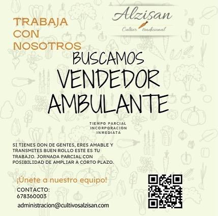 No lo dudes, contacta a través de nuestro teléfono de atención al cliente 678360003 o puedes entregar directamente tu currículum administracion@cultivosalzisan.com
