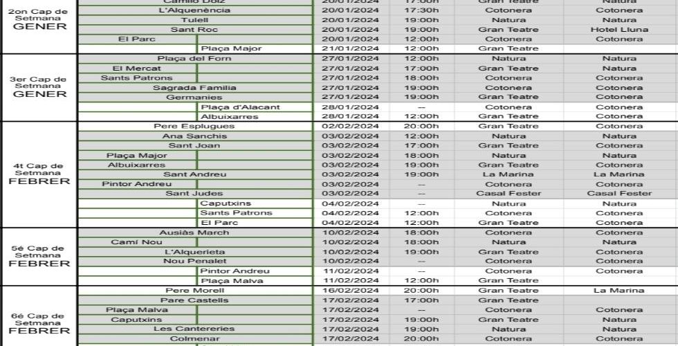 Les Presentacións de les 34 Falleres Majors amb els president infantil i Corts d’honor per a les falles del 2024 es prolongaran 7 caps de setmana fins al proxim 24 de febrer.